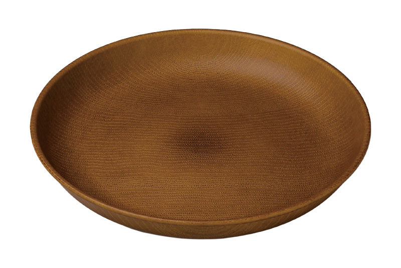 木製風樹脂食器。 使いやすい3サイズ展開の丸皿。食器洗浄機:〇