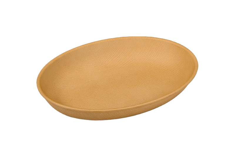 木製風樹脂食器。 盛り付けやすいオーバル型。食器洗浄機:〇