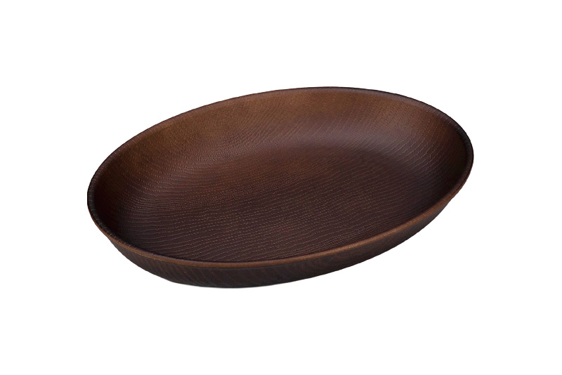 木製風樹脂食器。 盛り付けやすいオーバル型。食器洗浄機:〇