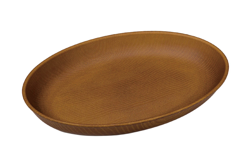 木製風樹脂食器。 盛り付けやすいオーバル型。食器洗浄機:〇
