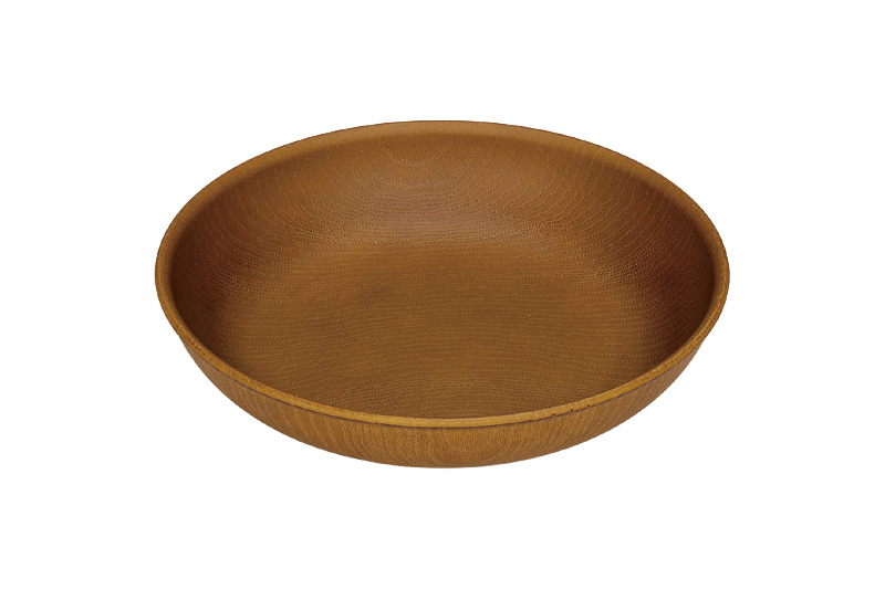 木製風樹脂食器。 使いやすい3サイズ展開の丸皿。食器洗浄機:〇
